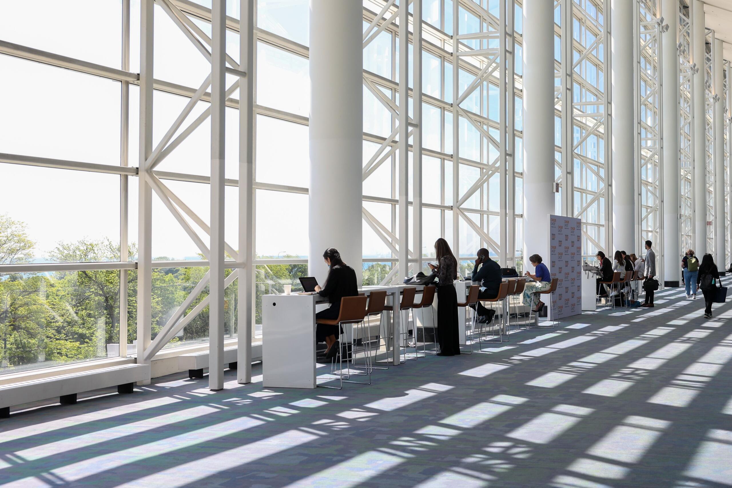 The soaring space features 100-foot ceilings, a visitor information booth, spacious ballrooms, and seamless access to the rest of the convention center. The building is also filled with more than 70 pieces of contemporary art, sourced from around the world.