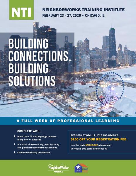 The first NeighborWorks Training Institute of 2026 returns to the Windy City.Join us in Chicago, IL, from Feb. 23-27, 2026! We’ll be offering updated or newly designed sessions on communication, microenterprise, fair housing, and coaching skills. After class hours, we’ll provide additional growth opportunities through hot-topic workshops and fun, interactive activities that deliver peer learning and help you build your professional network. You’ll be glad you came to Chicago to experience what the NeighborWorks Training Institute has waiting for you.